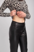 Spodnie z elastycznej skóry ekologicznej. Dopasowany fason, wysoki stan, zapinane na zamek z boku.