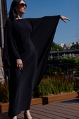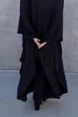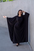 Szeroka, zwiewna abaja w stylu „butterfly” to kwintesencja subtelności, swobody i orientalnego wdzięku. Lekki fason z efektem rozpostartych skrzydeł daje poczucie przestrzeni i lekkości, czyniąc tę suknię idealnym wyborem zarówno na co dzień, jak i na wyjątkowe okazje.